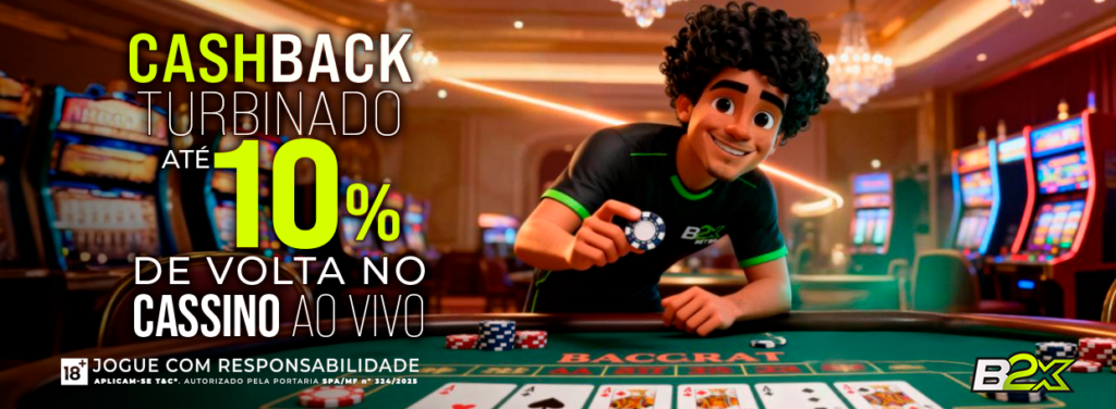O Cassino Ao Vivo da B2XBET está de cara nova. O benefício que antes chegava a 5% agora está turbinado e vai até 10%. Isso significa mais retorno, mais vantagem e uma experiência premium criada para quem realmente ama jogar ao vivo.