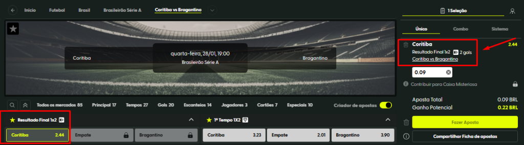 • Selecione o evento e o mercado