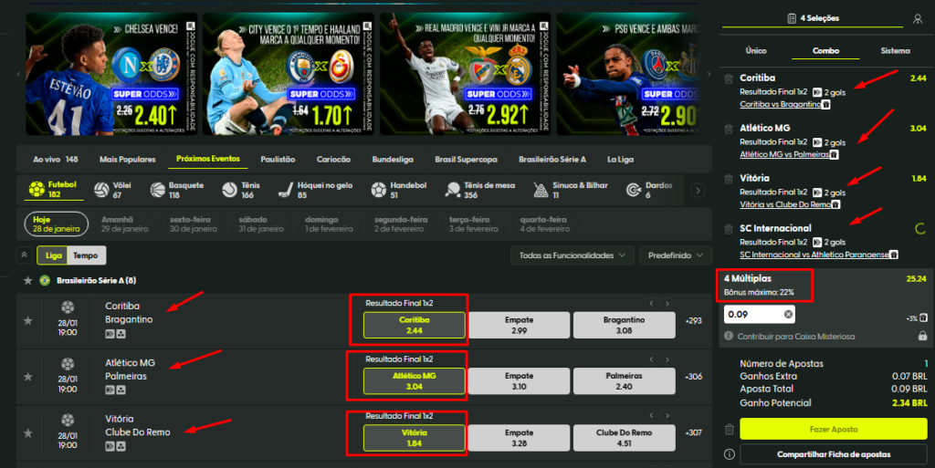 • Confira a odd total combinada