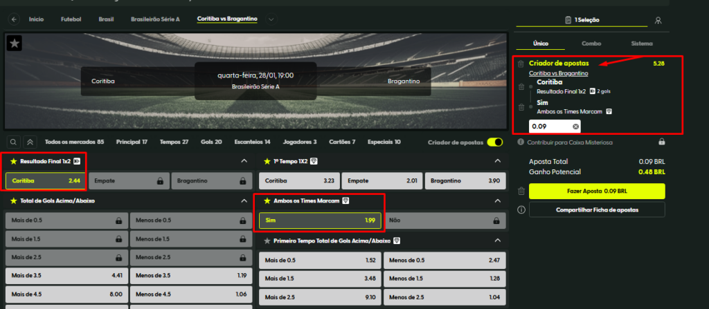 O Bet Builder é uma ferramenta que permite ao apostador criar um bilhete personalizado dentro de um único jogo, combinando diferentes mercados, como resultado da partida, número de gols, cartões ou desempenho de jogadores.